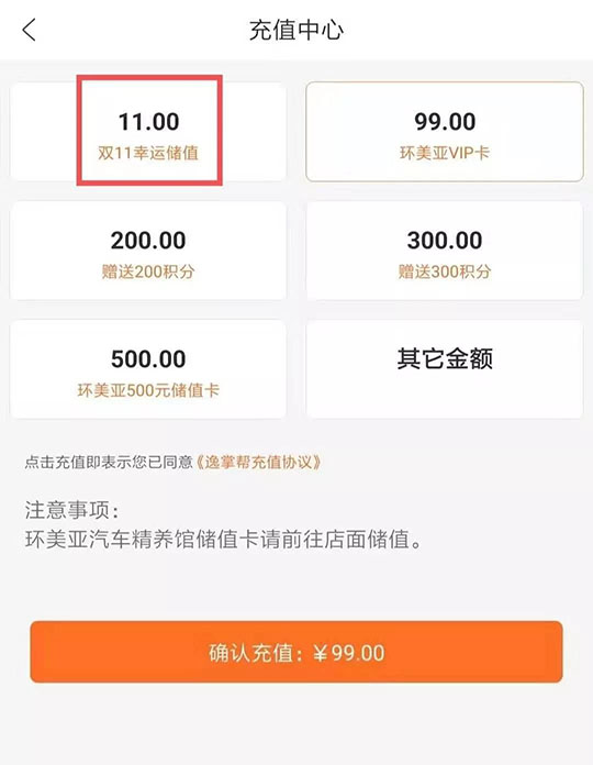 3、凡參與活動充值未中獎的用戶即可到環(huán)美亞門店進行優(yōu)惠洗車1次(選擇到店洗車有效期15),如不選擇洗車可加價選擇店內其他服務項目。