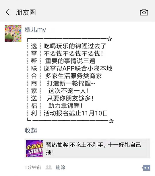 朋友圈轉發(fā)推文,再贈送門店抽獎1次