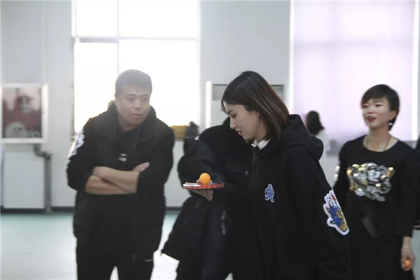 在比賽中隊(duì)友們相互鼓勵(lì),相互配合。乒乓球接力不僅考驗(yàn)隊(duì)員的速度、耐心,更考驗(yàn)著隊(duì)員們團(tuán)結(jié)協(xié)作的能力,以及彼此的默契程度。現(xiàn)場游戲活動(dòng)中,比賽氣氛和諧快樂,大家都被簡單的互動(dòng)游戲所感染,一陣陣吶喊助威聲從運(yùn)動(dòng)場上傳來。