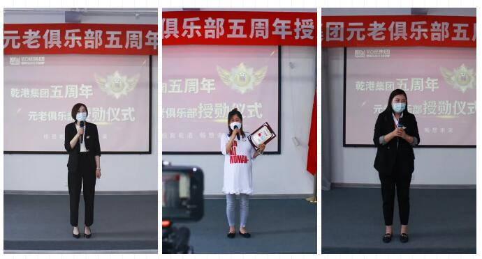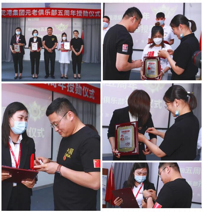 2020年5月28日,乾港集團(tuán)元老俱樂部五周年授勛儀式隆重召開,乾港集團(tuán)對3位工齡超過5年以上的老員工授予榮譽(yù)勛章,感謝元老們在乾港集團(tuán)發(fā)展中做出的貢獻(xiàn)。